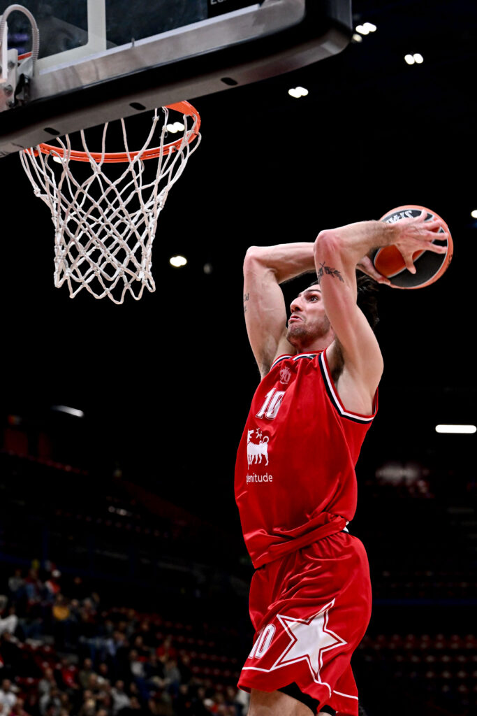 IL SECONDO TEMPO – L’Asvel rientra subito a meno quattro, poi come successo per tutta la gara, l’Olimpia risponde. Una tripla di Bolmaro la ricaccia indietro, poi Armoni Brooks centra il bersaglio dall’arco e allunga ancora a più otto. Se nel primo tempo erano stati Saljaas e Traore a creare i problemi maggiori, nella ripresa Watson si prende l’Asvel sulle spalle. E’ lui a cancellare la tripla di Brooks. Poi ci prova Booker a salire di colpi, mentre Coach Poeta schiera Mannion ed Ellis assieme per ovviare ai tre falli di Brooks. Milano conserva sette punti di margine su una palla rubata da Tonut, ma nel terzo quarto concede qualcosa a rimbalzo. Alla fine del terzo, è avanti 56-51. La trama del quarto periodo non cambia: allungo e rimonta, allungo e rimonta. Quando l’Asvel si avvicina a meno tre, Booker segna lungolinea. Una tripla clamorosa di Pippo Ricci ristabilisce otto punti di margine, poi da una rubata di Quinn Ellis nasce un’altra tripla di Brooks. A metà del quarto, l’Olimpia ha di nuovo nove punti di vantaggio. Ancora una volta, arriva la tripla a bloccare la fuga. La segna Ndiaye dall’angolo. Poi Watson usa tutta la sua velocità e ricuce a meno quattro. La gara diventa qui un duello tra il playmaker dell’Asvel e Armoni Brooks. Due triple riaprono otto punti, Watson riduce il gap a cinque punti. Poi arriva una schiacciata di Bolmaro, una palla rubata da Booker, un canestro ancora di Booker da sotto. La partita sembra finita quando a Tonut sanzionano un antisportivo sfortunato e Watson ci costruisce sopra una tripla di tabellone. Ma l’Olimpia controlla le operazioni. Bolmaro nel finale detta i tempi dell’attacco al pressing e infine firma l’80-72.