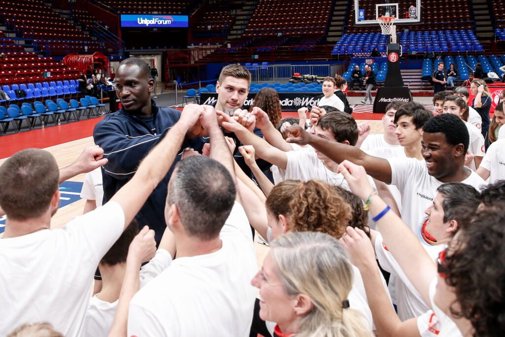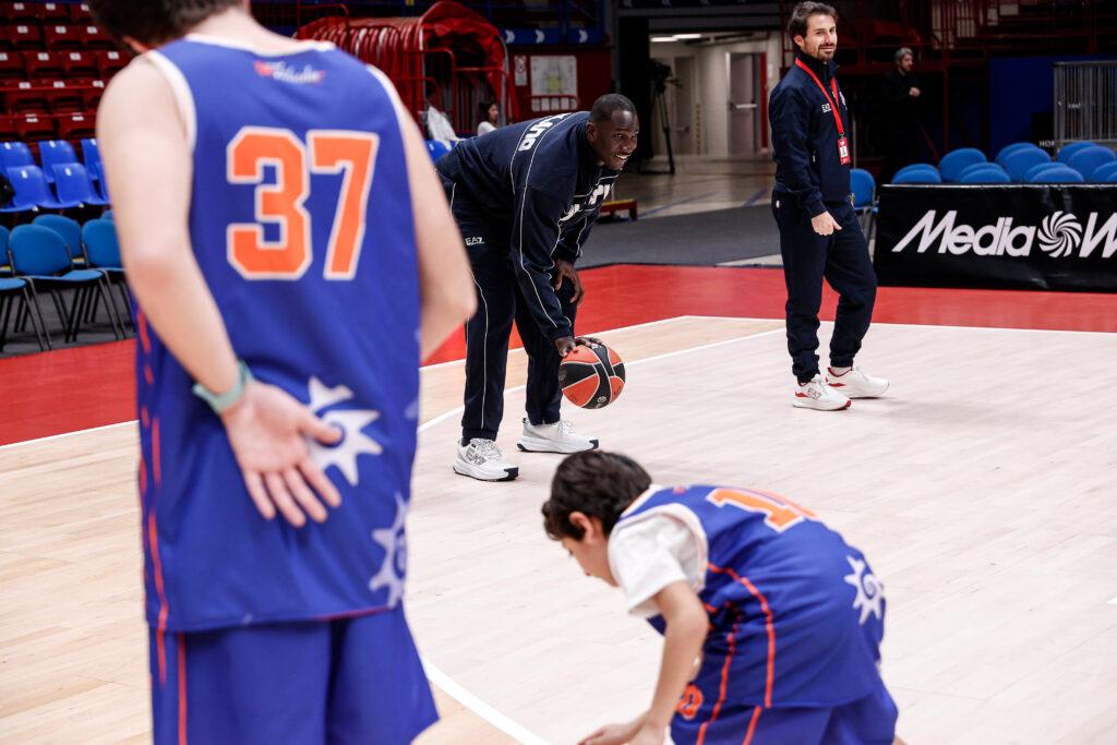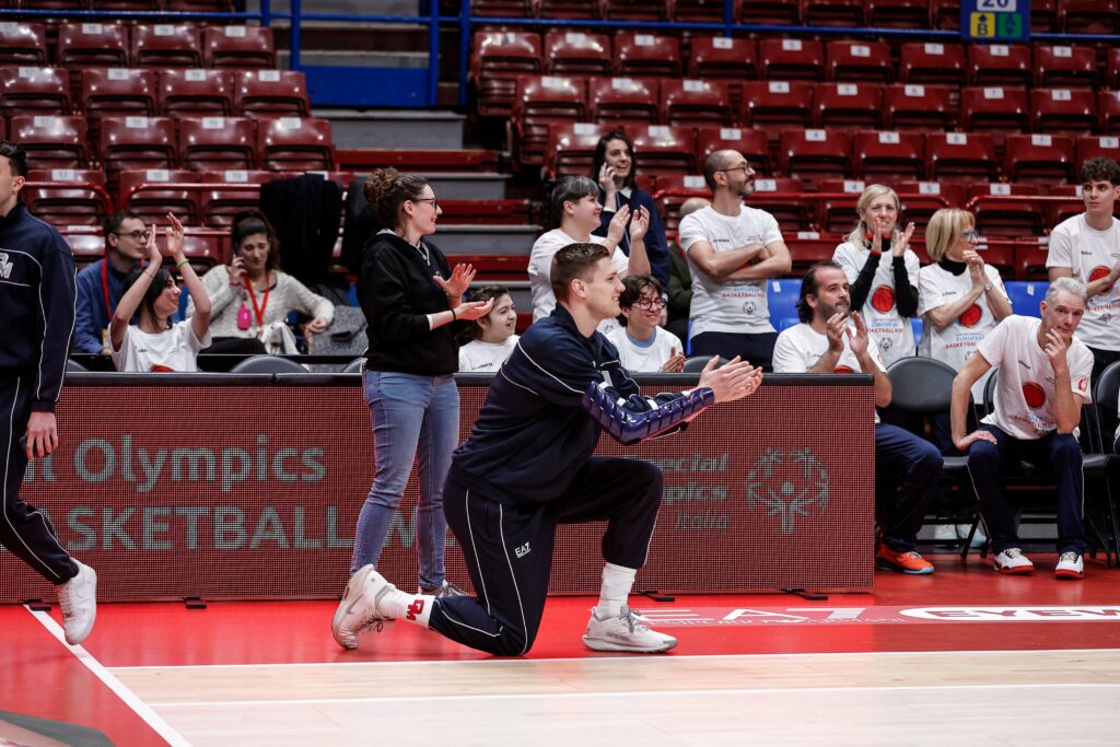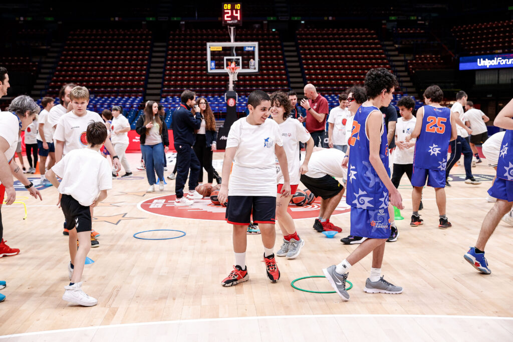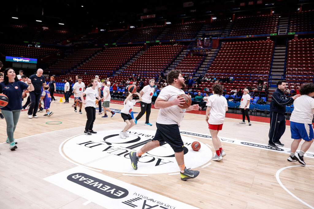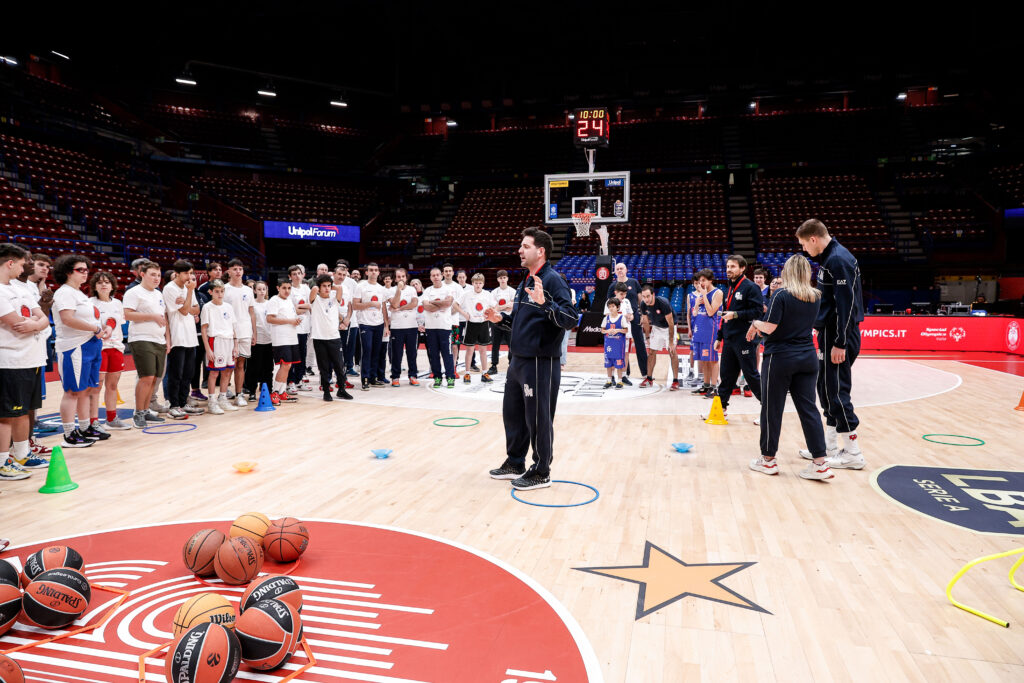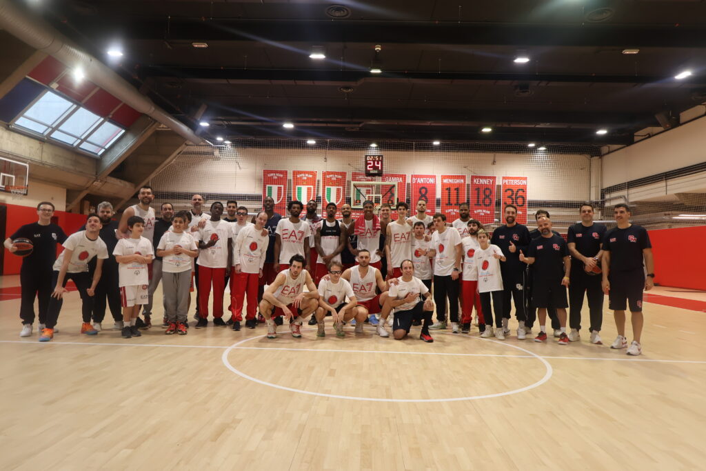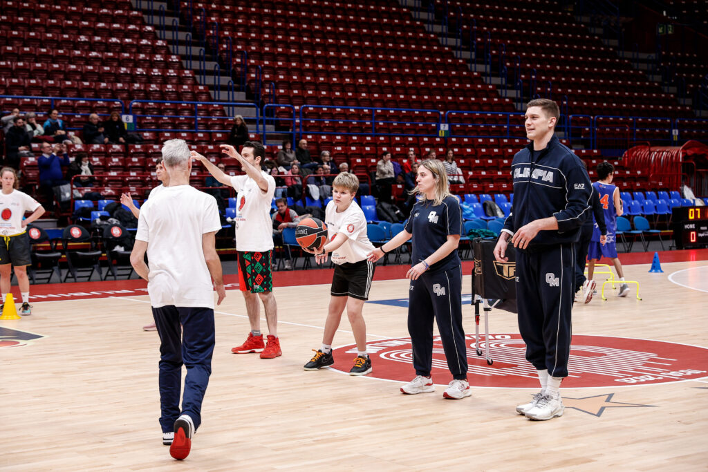 Nel pre-partita, è stato organizzato un clinic inclusivo con educatori, atleti e staff di Special Olympics Italia, ragazzi e ragazze della Cooperativa Fabula e Il Balzo, e i corsisti di Armani Junior Program, tornati per un momento pratico sul campo.