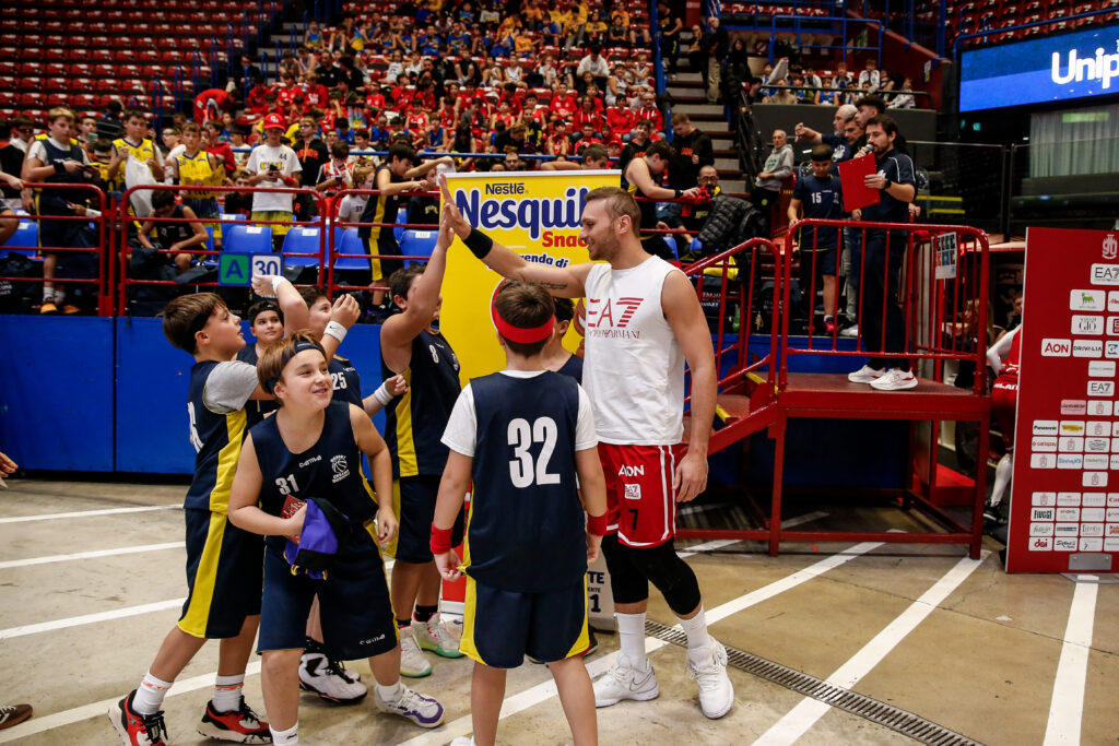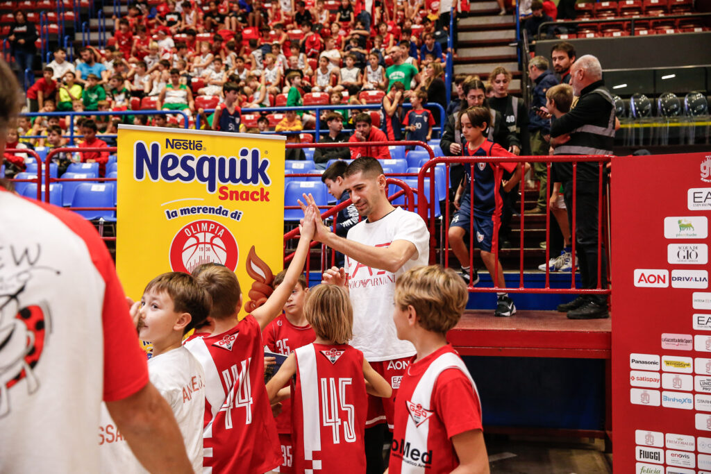 La prima tappa, in occasione della sfida contro Treviso, ha visto la presenza speciale di Diego Flaccadori, che ha salutato i bambini e condiviso con loro un momento unico sul parquet del Forum, mentre la seconda tappa, organizzata durante la partita contro Trapani, ha visto protagonista Stefano Tonut.