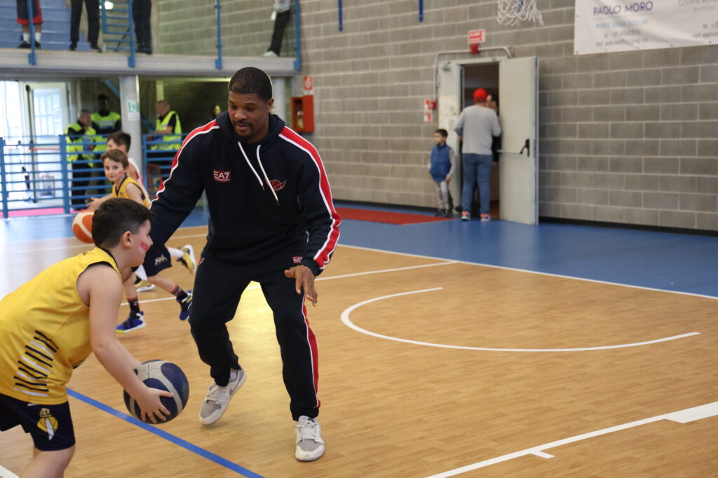 Michele Samaden, responsabile dell’Armani Junior Program, ha ringraziato i partecipanti e ricordo quanto l’evento sia stato un momento che la società ha meritato per la partecipazione al programma AJP nella passata stagione, mentre Kyle Hines, leggenda del basket europeo, ha ringraziato i partecipanti per essere venuti così numerosi e manifestato la sua gioia nel poter giocare con loro.