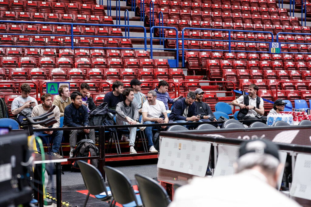 Alle 19:30, momento speciale con la foto pre-partita sul parquet, a cui ha fatto seguito il riscaldamento visto da bordocampo e, infine, la partita vissuta dalle tribune, nel clima intenso dei playoff.