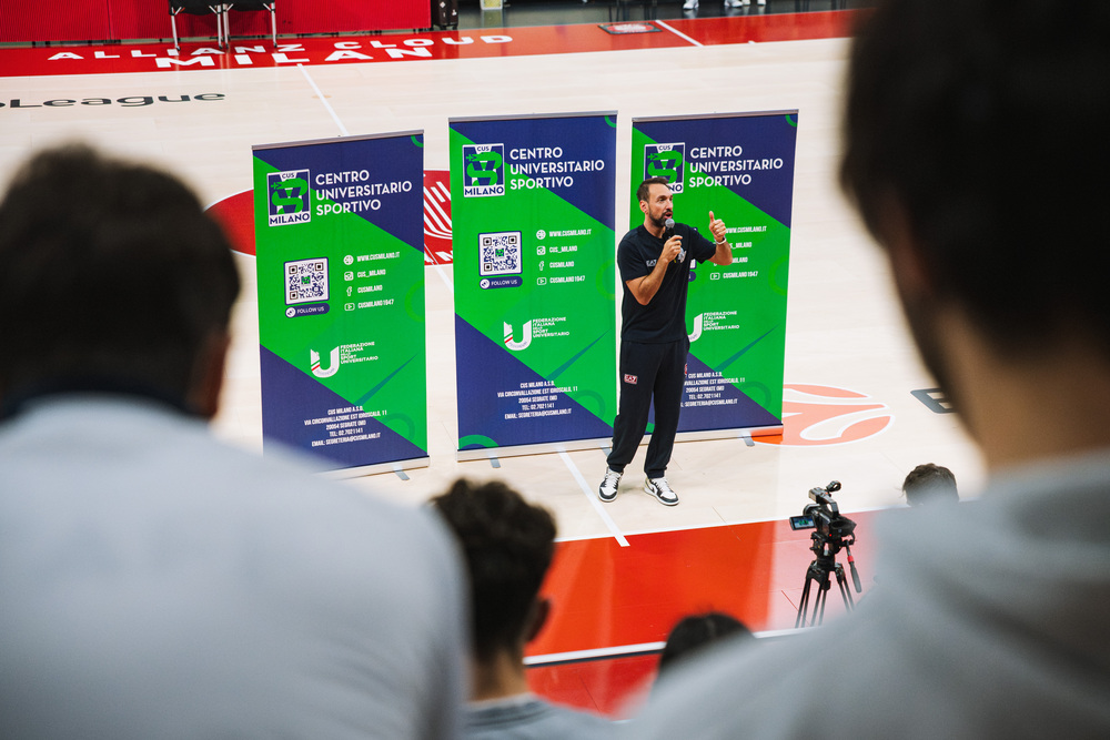 Grande partecipazione per la prima edizione dell’Olimpia Milano University Clinic, l’iniziativa organizzata in collaborazione con il CUS Milano che ha coinvolto circa 400 studenti universitari in una mattinata di formazione e confronto dedicata al mondo della pallacanestro professionistica.