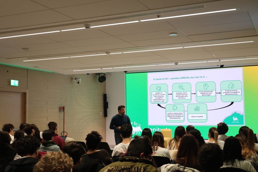 Dopo l’introduzione di Martina Rutelli, gli esperti Alessandra Selva, Roberto Gatti e Orazio Susi hanno guidato i ragazzi con interventi chiari e coinvolgenti, toccando temi come l’efficienza energetica, il ruolo dell’Energy Manager e il peso dei comportamenti quotidiani sul risparmio di energia. Hanno inoltre fornito molti stimoli e linee guida chiare per sviluppare il loro project work, aiutando gli studenti a tradurre le conoscenze acquisite in idee concrete e realizzabili.