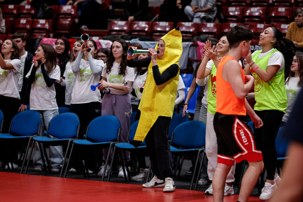 Le squadre, selezionate all’interno degli istituti, si sono sfidate con grande energia, per decretare i piazzamenti in vista delle finali che si terranno ad Aprile. A fare da cornice le classi impegnate nel progetto hanno sostenuto i loro compagni con coreografie e tifo, riempiendo il Forum con striscioni e cori facendo sentire la propria presenza.