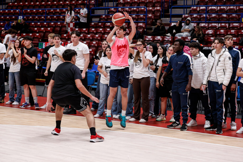Gli istituti, suddivisi in due tappe da cinque istituti ciascuno, hanno trascorso il pomeriggio sul parquet del Unipol Forum sfidandosi in un 3vs3 e vivendo da vicino lo sport professionistico scoprendo cosa significa far parte del mondo Olimpia.