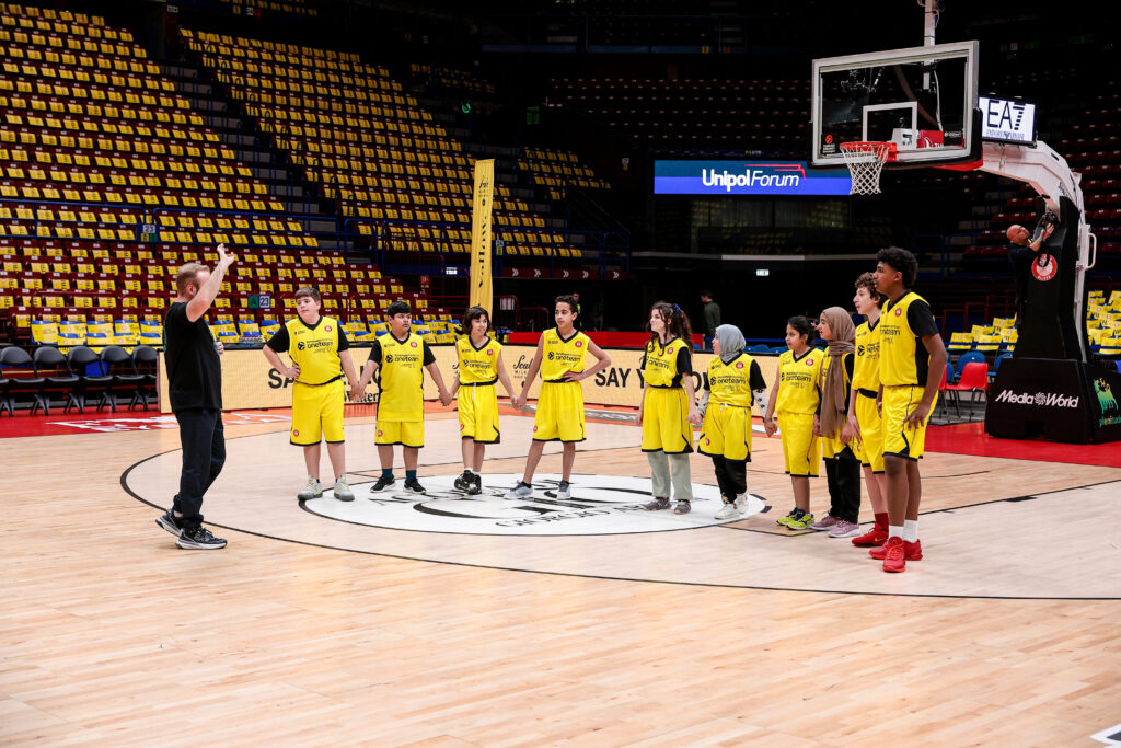 Just two days earlier, on Tuesday, January 14, 160 children from the first-year classes of the middle school at Arcadia participated in on-court activities at the Unipol Forum. They then silently observed Olimpia Milano’s practice just hours before their game against Alba Berlin. Players and children later gathered for a memorable photo at the centre court. In the afternoon, a training session was held at the Arcadia Comprehensive School, involving 50 children from the One Team Group.