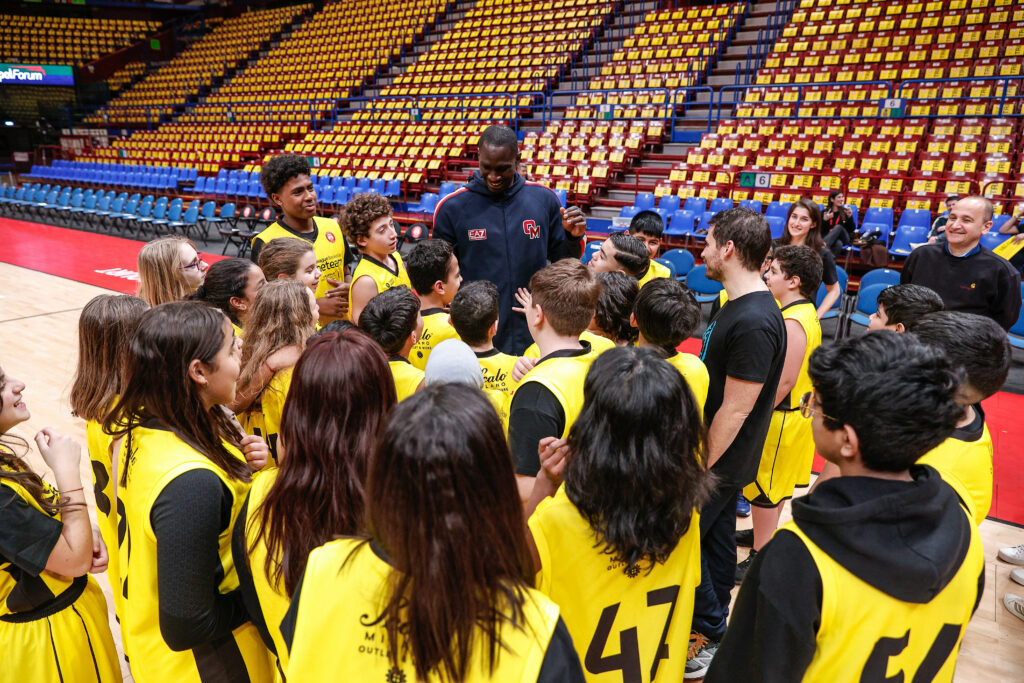 Durante l’attesa del grande match, i ragazzi hanno avuto l’occasione di essere protagonisti del tunnel d’ingresso, vivendo da vicino l’emozione di vedere i giocatori e lo staff della squadra prima della partita. Da bordo campo, hanno assistito all’allenamento dei loro idoli e al riscaldamento pre-partita, immergendosi completamente nell’atmosfera unica che precede un incontro di pallacanestro ad alto livello.