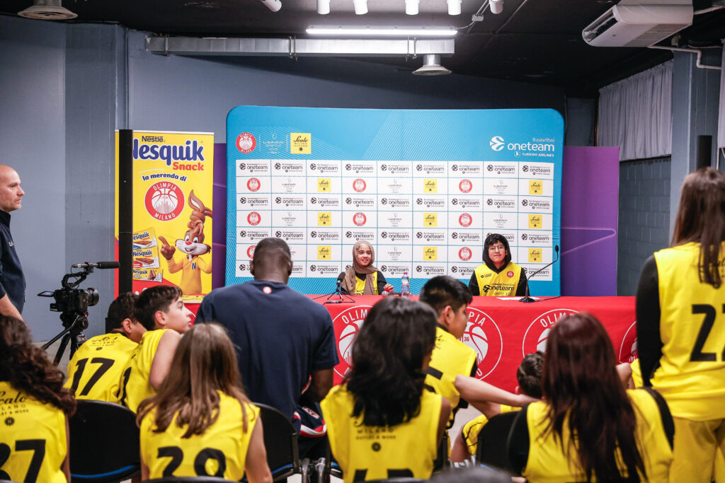 I ragazzi hanno avuto poi anche la possibilità di incontrare e poi rivolgere domande a Ousmane Diop, prima allenatore in campo e poi intervistato speciale. Il gigante buono di Olimpia dopo aver consegnato a tutti i ragazzi la merenda offerta da Nesquik Snack, partner di Olimpia, con grande sincerità e senza timore, ha raccontato le difficoltà e le sfide che ha affrontato quando aveva la loro stessa età, dimostrando che anche gli idoli dello sport, come loro, hanno dovuto superare ostacoli e incertezze per arrivare dove sono oggi. Le sue parole, piene di umiltà, hanno offerto una lezione di resilienza e determinazione, ispirando i giovani partecipanti a non arrendersi davanti alle difficoltà, ma a considerarle come opportunità di crescita.