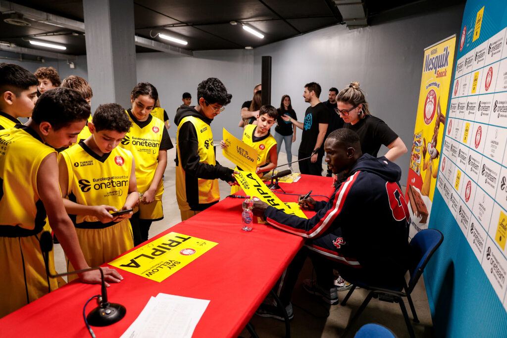 The boys had also the opportunity of meeting and asking questions to Ousmane Diop, first coach and then special interviewee. Olimpia’s gentle giant, after handing out snacks to all the kids provided by Nesquik Snack, with great sincerity and without fear, Diop recounted the difficulties and challenges he faced when he was the same age as them, showing that even sports idols, like them, had to overcome obstacles and uncertainties to get where they are today. His words, full of humility, offered a lesson in resilience and determination, inspiring the young participants not to give up in the face of difficulties, but to see them as opportunities for growth.