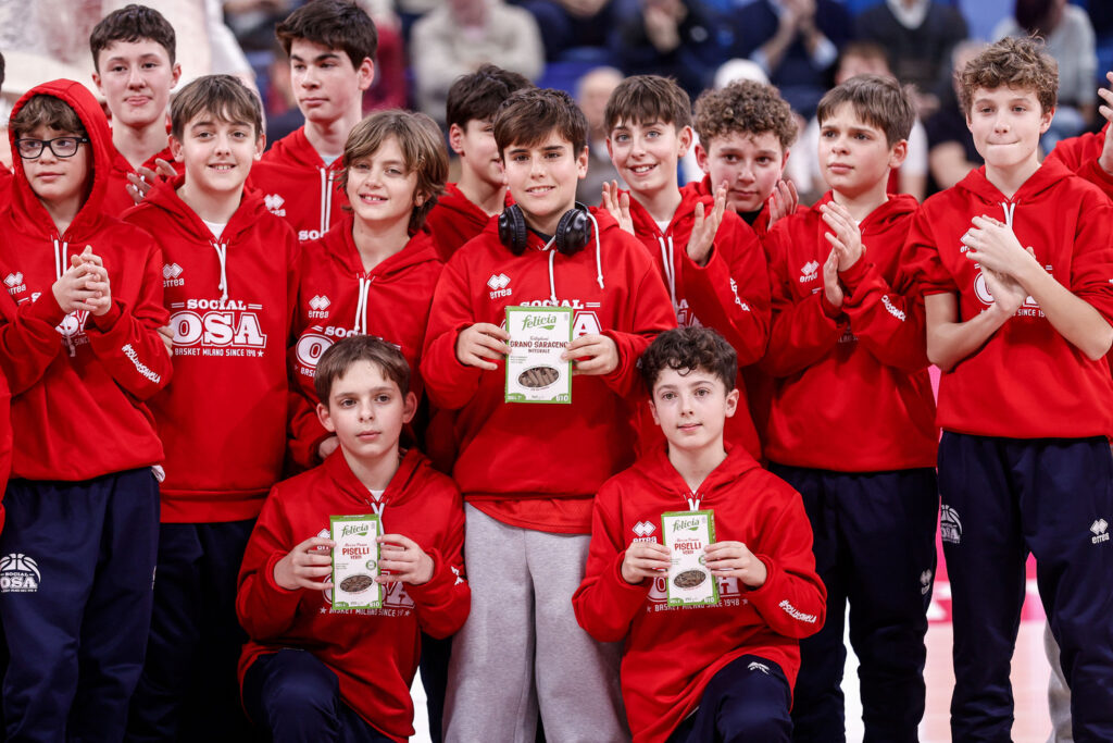 Il momento più emozionante è arrivato alla fine del primo tempo, quando una rappresentanza della società è entrata in campo davanti al pubblico dell’Allianz Cloud per ricevere il premio ufficiale, con la consegna di una fornitura di Pasta Felicia, partner di Olimpia Milano insieme all’applauso del pubblico di Milano.