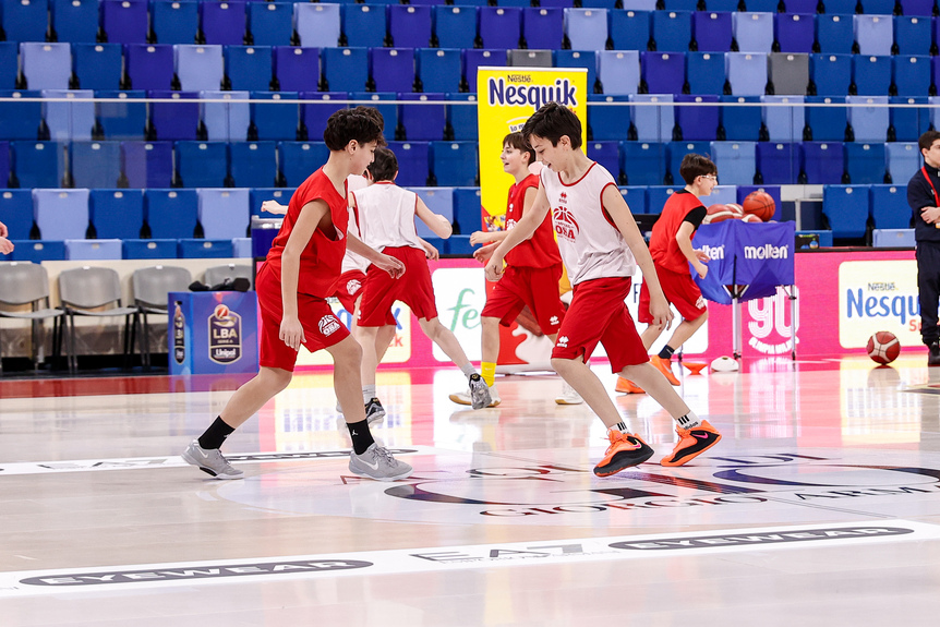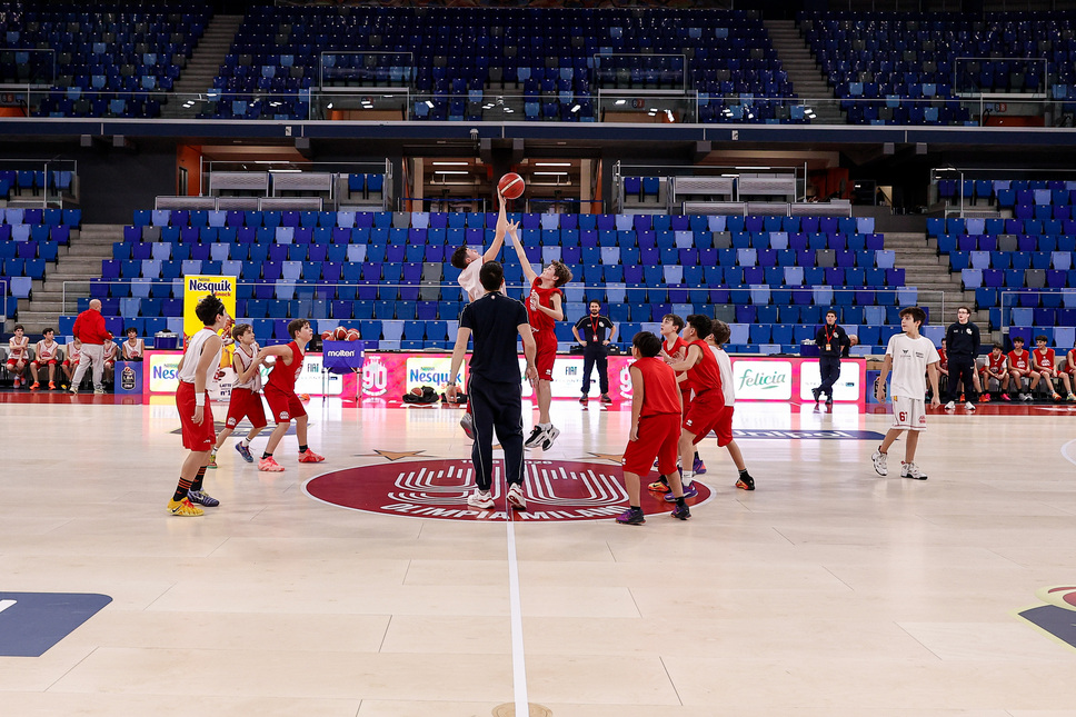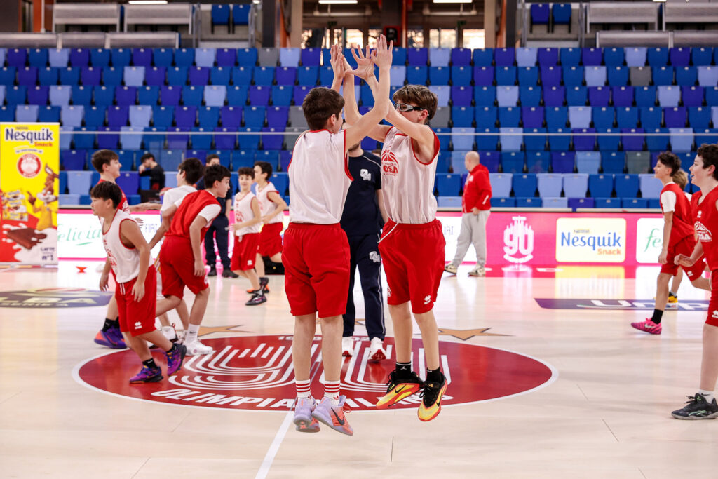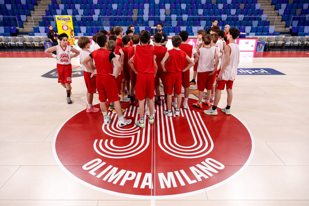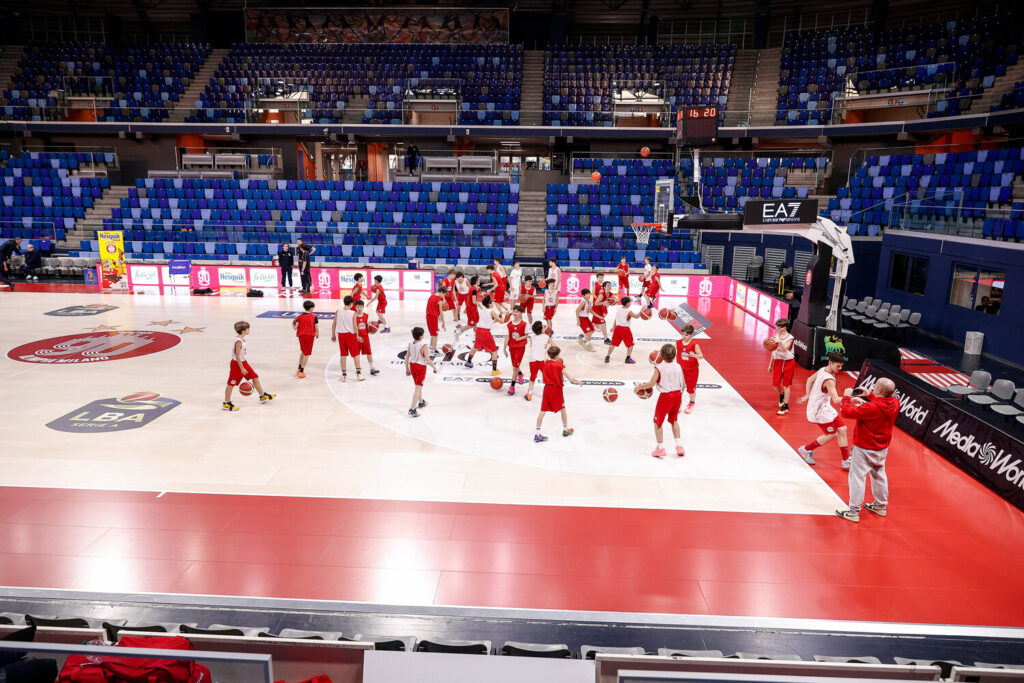 La giornata premio è iniziata nel pomeriggio con un allenamento esclusivo sul campo dell’Allianz Cloud, guidato da due allenatori di Olimpia Milano e dedicato a 30 atleti del settore giovanile di Socialosa Basket.